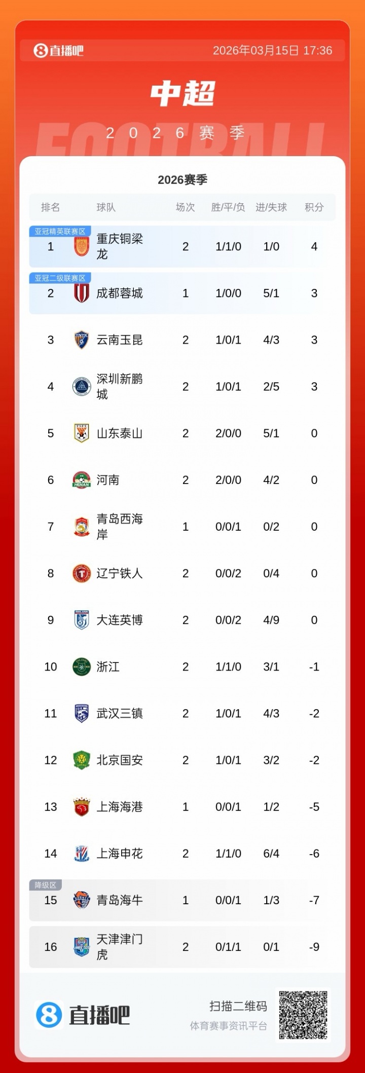 本赛季中超开赛前共有9队被罚分,目前泰山、河南积分已经归零!